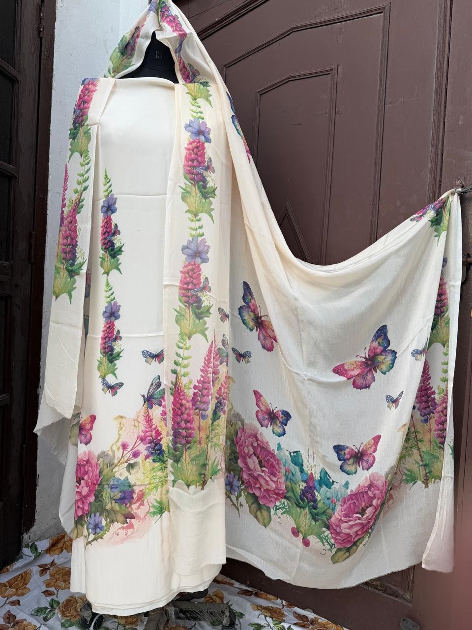 Be the first to review “Cream Crepe Digital Printed 3 Piece Suit Set”