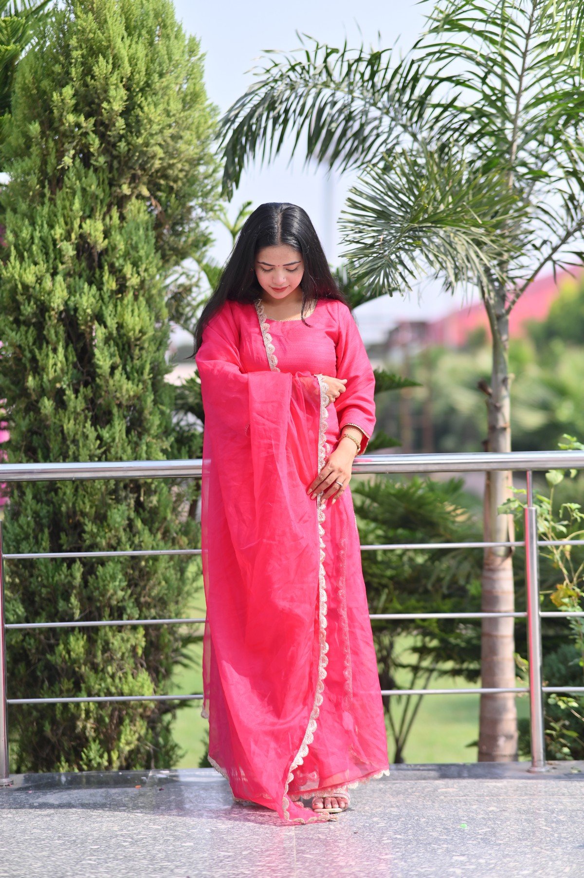 Charming Pink Raw Silk Suit Set adorned with delicate lace detailing. Crafted from soft, lustrous fabric for a graceful and comfortable festive look. Perfect for weddings, parties, and elegant celebrations. The intricate craftsmanship adds a luxurious touch to your traditional wardrobe. Pair it with statement jewelry to complete your sophisticated ensemble.